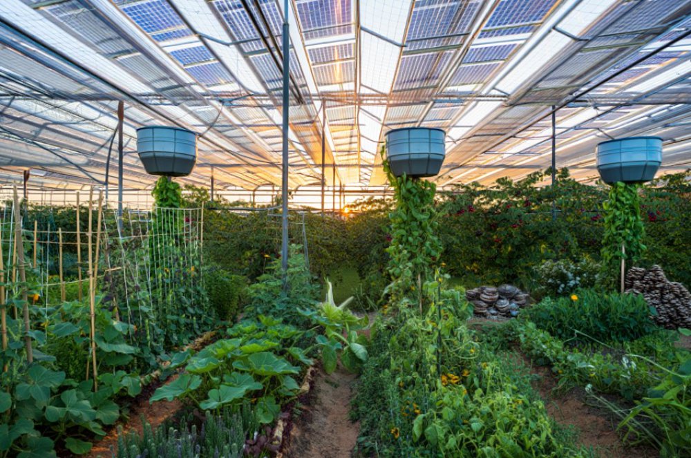 Zusätzlich zur Energieerzeugung (mit einer Leistung von bis zu 120 Watt pro Quadratmeter) dienen die Module als Wassersammelfläche. Durch nächtliche Auskühlung kondensiert Luftfeuchtigkeit an der Oberfläche und wird in ein unterirdisches Zisternensystem geleitet. Sensoren steuern die bedarfsgerechte Bewässerung, wodurch der Wasserverbrauch laut ersten Prototypen in Andalusien um bis zu 40 % sinkt, bei nur minimalen Ernteeinbußen (15 %).