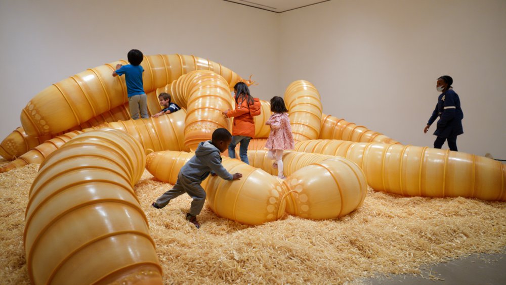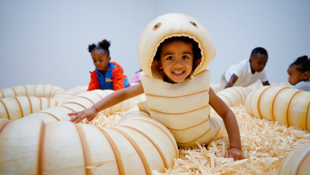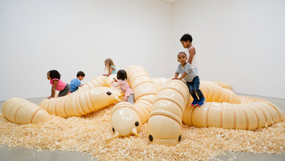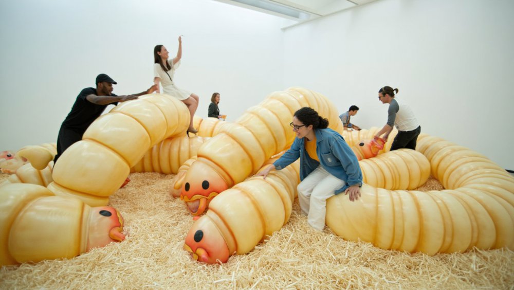 Diese raumgreifende Installation inszeniert einen begehbaren Spielplatz der Perspektiven, der kulinarische Vorurteile und kulturelle Konditionierungen auf humorvolle Weise dekonstruiert. Im Zentrum der Arbeit stehen mehrere überdimensionale, aus Silikon geformte Mehlwürmer von übermenschlicher Größe, deren realistische Segmentierung und weiche, organische Formen bewusst eine ästhetische Verfremdung erzeugen. Durch die niedliche, einladende Anmutung der Skulpturen wird die übliche Abneigung gegenüber Insekten unterlaufen und zur Reflexion angeregt: Warum gelten manche Tiere als niedlich, andere als ekelerregend, obwohl sie ähnliche Funktionen in der Nahrungskette erfüllen?