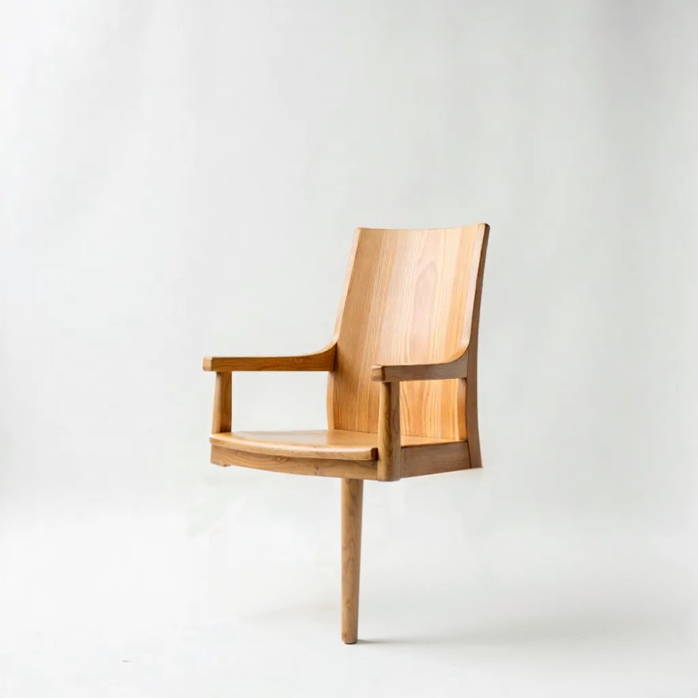MonoBalance besteht aus einem einzigen, massiven Holzbein, das sich nach oben hin zu einer Sitzfläche verbreitert. Das Holz ist sorgfältig ausgewählt und bearbeitet, um sowohl Stabilität als auch eine gewisse Flexibilität zu gewährleisten. Die Sitzfläche ist leicht konkav geformt, um dem Nutzer eine gewisse Führung zu bieten, ohne die Herausforderung des Balancehaltens zu mindern. Der Stuhl verzichtet bewusst auf zusätzliche Stützen oder Armlehnen, um die Erfahrung des Ausbalancierens so pur und unverfälscht wie möglich zu halten.