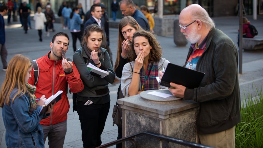 Urbane räume werden nach typischen gerüchen, texturen durchsucht. Dabei werden elemente wie beton, blätter von erstbesiedlern, laternen als bühneder vrkostung hergenommen.