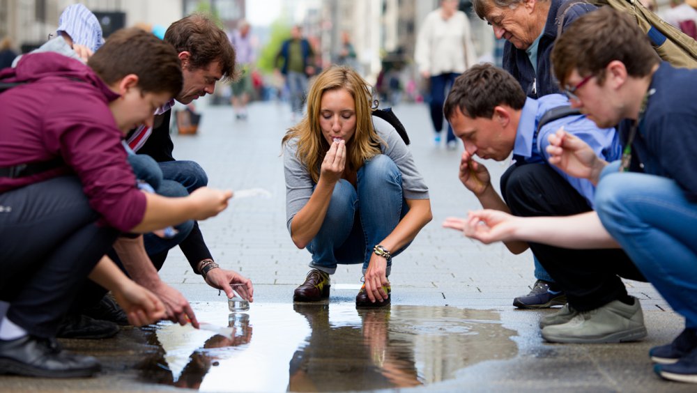radikaler Akt der Sinneserweiterung und verankert sich in der Tradition der Eat Art sowie in zeitgenössischen künstlerischen Praktiken der multisensorischen Stadterforschung. Konkret sind jedoch nur wenige städtische Materialien unbedenklich: Regenwasser von begrünten Dächern oder sauberen Oberflächen kann metallische oder erdige Noten bieten, sofern schadstoffgeprüft. Die Performance wird so zur verkörperten Kritik an der Art wie wir leben in urbanen Orten wie Städten oder Kleinstädten. und schafft neue Bezüge zwischen Körper, Material und städtischer Umwelt.